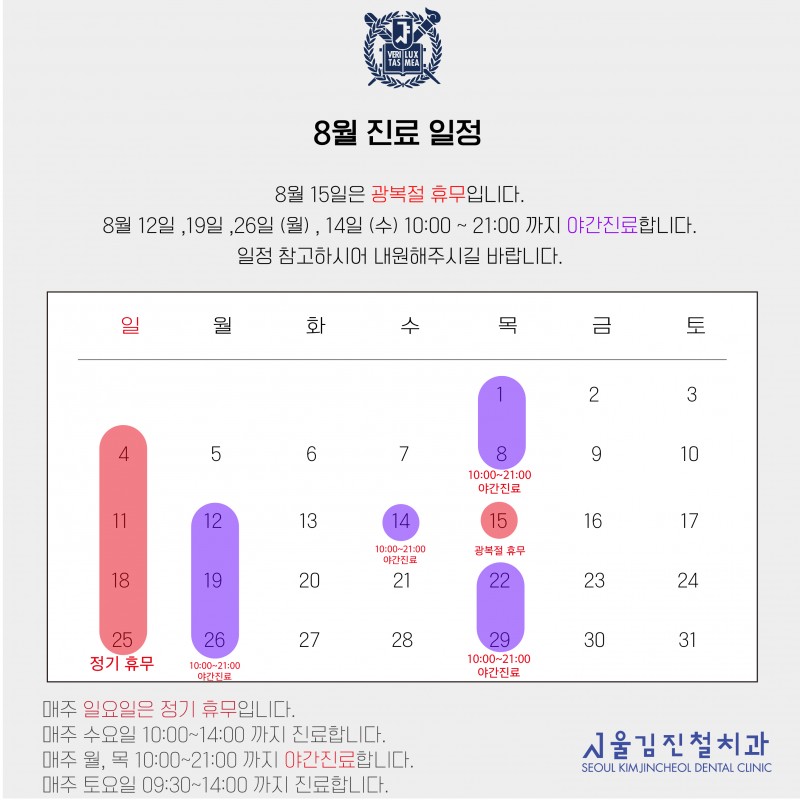24년 8월 진료일정 안내