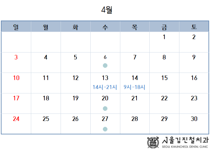 22년 4월 진료일정 안내